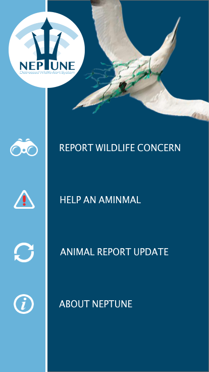 User Interface Concept - Neptune - Distressed Wildlife Alert Phone Application -2018